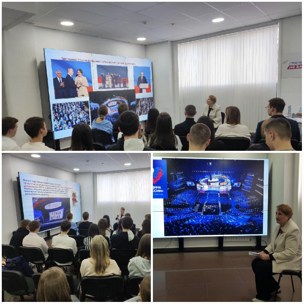 Сегодня на площадке Штаба общественной поддержки Саратовской области Председатель Ассоциации «Совет муниципальных образований Саратовской области, член Общественной палаты РФ и Саратовской области Людмила Жуковская провела встречу со студентами РАНХиГС и СГТУ, где рассказала о форуме «Малая Родина – сила России!», который прошел с участием Президента страны Владимира Путина и Всероссийской премии «Служение», призванной поднять престиж работы муниципалитетов. Участники встречи обсудили реализацию региональных программ в Саратовской области, отметив их широкий спектр направленности, масштабность и четкую ориентированность на решение самых актуальных вопросов жителей региона.