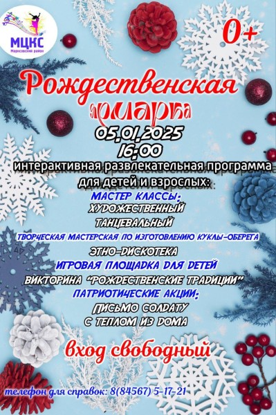 Приглашаем жителей и гостей г. Маркса на Рождественскую ярмарку! Поучаствуйте в викторинах и мастер-классах!