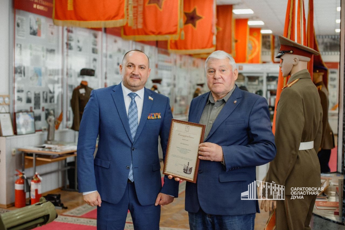 Парламентарий встретился с ветеранами педагогического труда, офицерами запаса, которые воспитали поколения командиров. Вячеслав Калинин (фракция «Справедливая Россия – Патриоты – За правду») вручил благодарности Председателя Саратовской областной Думы и Почётные грамоты депутата регпарламента активистам ветеранского движения.