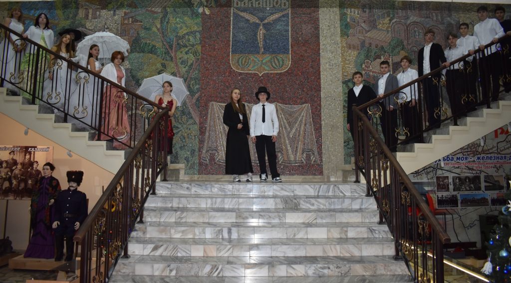 Сегодня в музее состоялось необычное предпраздничное мероприятие, подготовленное совместно с учащимися 8 «г» класса МАОУ «Гимназия имени Ю. А. Гарнаева» — «И бал блестит во всей красе…» .