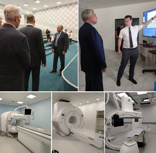 Делегацию возглавил Председатель Госдумы Вячеслав Володин. Первым делом посетили онкологический центр, где совместно с Губернатором региона, представителями областного парламента и городской думы, а также Администрацией города проверили ход выполнения работ.