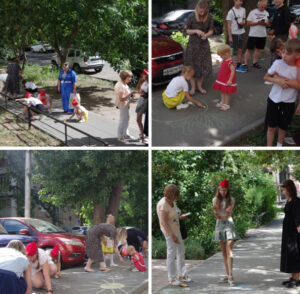В рамках конкурса «Моя семья — моя команда» семьи рисовали на асфальте иллюстрации к русским сказкам о семье. Победителями стали многодетные семьи Ершовых и Гераськиных.