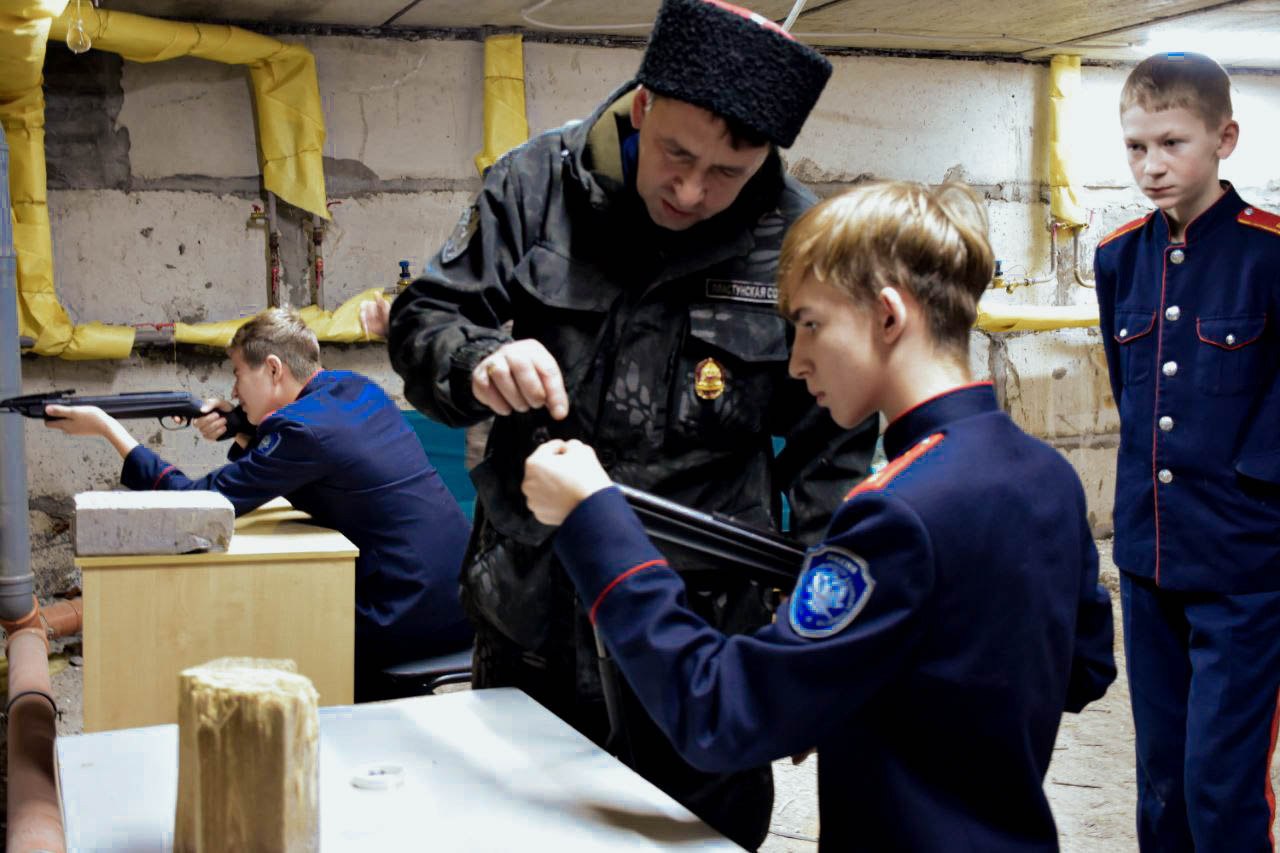 Казаки рассказали ребятам об истории казачьей культуры, показали предметы быта и экспонаты, которые они привезли с поисковых экспедиций. Далее состоялся мастер-класс, где ребята научились метать ножи, стрелять из пневматического оружия, собирать и разбирать автомат.