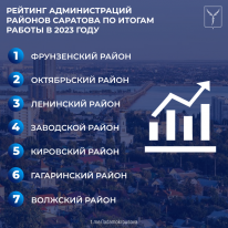 По совокупности показателей 1 место заняла администрация Фрунзенского района, 2 место – у Октябрьского, замыкает тройку лидеров администрация Ленинского района. Далее места распределились следующим образом: 4 место – Заводской район, 5-ое – Кировский, 6-е у Гагаринского и 7-е у Волжского района.