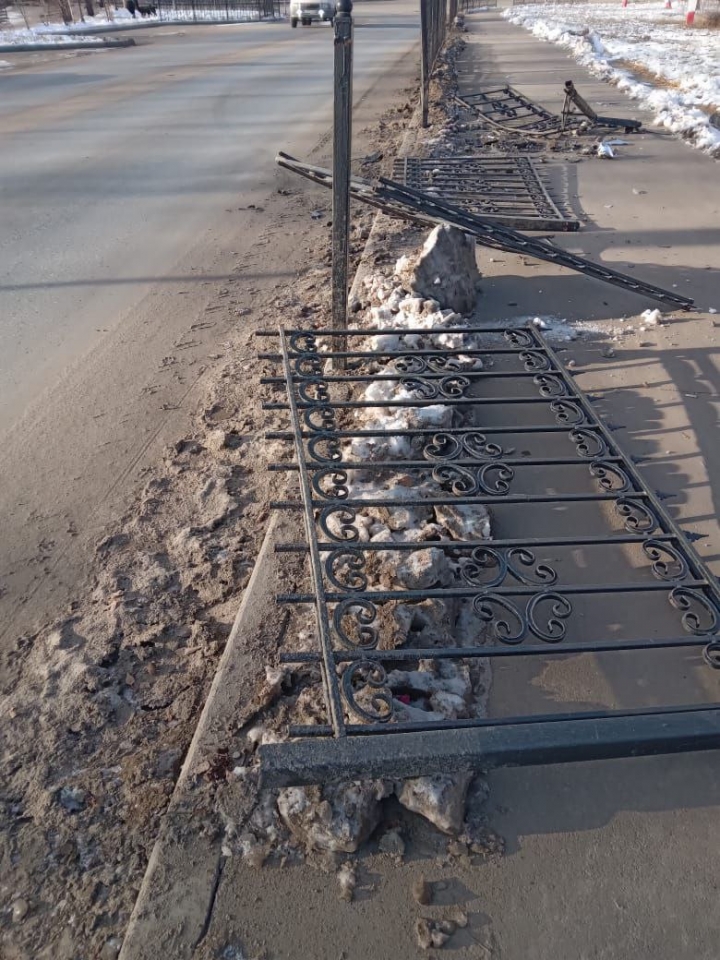 Сегодня ночью в Петровске неизвестный автомобиль снес несколько секций ограждения рядом с Железным мостом и скрылся.
