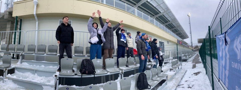 Матч прошел в сложных погодных условиях: в Питере второй день снегопад, сегодня +1°. Но до "Рощино-Арены" добрались около десятка саратовских фанатов.