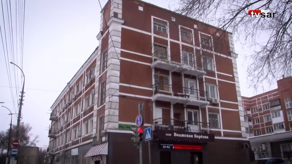 Четырехэтажное здание в стиле конструктивизма на улице Чернышевского, 193 (угол Октябрьской) было построено в 1935 году по проекту известного саратовского архитектора Дмитрия Карпова как общежитие для речников.