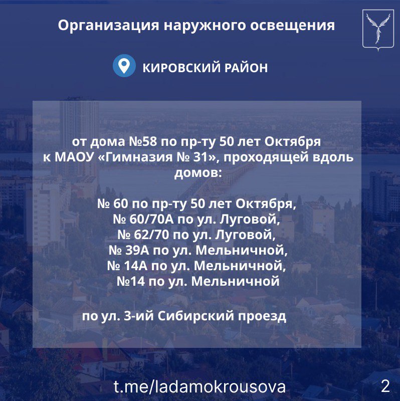 В 2024 году в рамках муниципальной программы будет организовано наружное освещение на 11 объектах улично-дорожной сети
