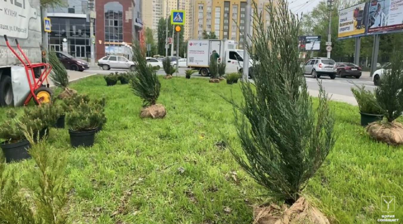 Сегодня в Октябрьском районе по ул. Шелковичная (от ул. Серова до ул. Чернышевского) высажены хвойные кустарники.