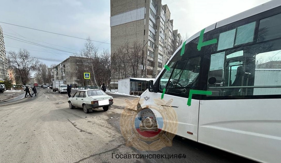 В Саратове маршрутка протаранила припаркованную машину. Есть пострадавший