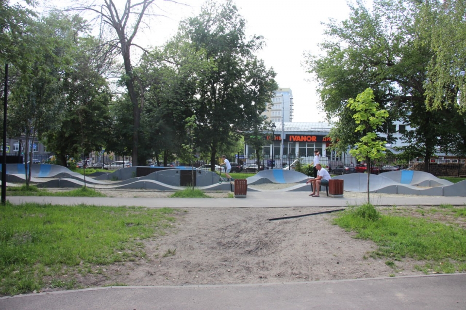 Там появились памп-трек, лавочки, новые дорожки . В зеленых зонах высадили деревья и кустарники, но не все из них прижились.