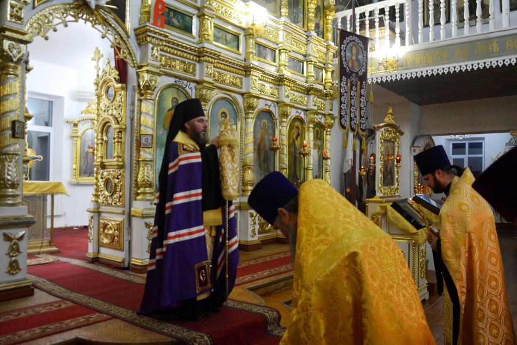 Его Преосвященству сослужили ключарь собора протоиерей Роман Волков, протоиерей Владимир Баев, священник Сергий Канаков, священник Артемий Вестимов, диакон Александр Шмелёв, диакон Роман Репин.