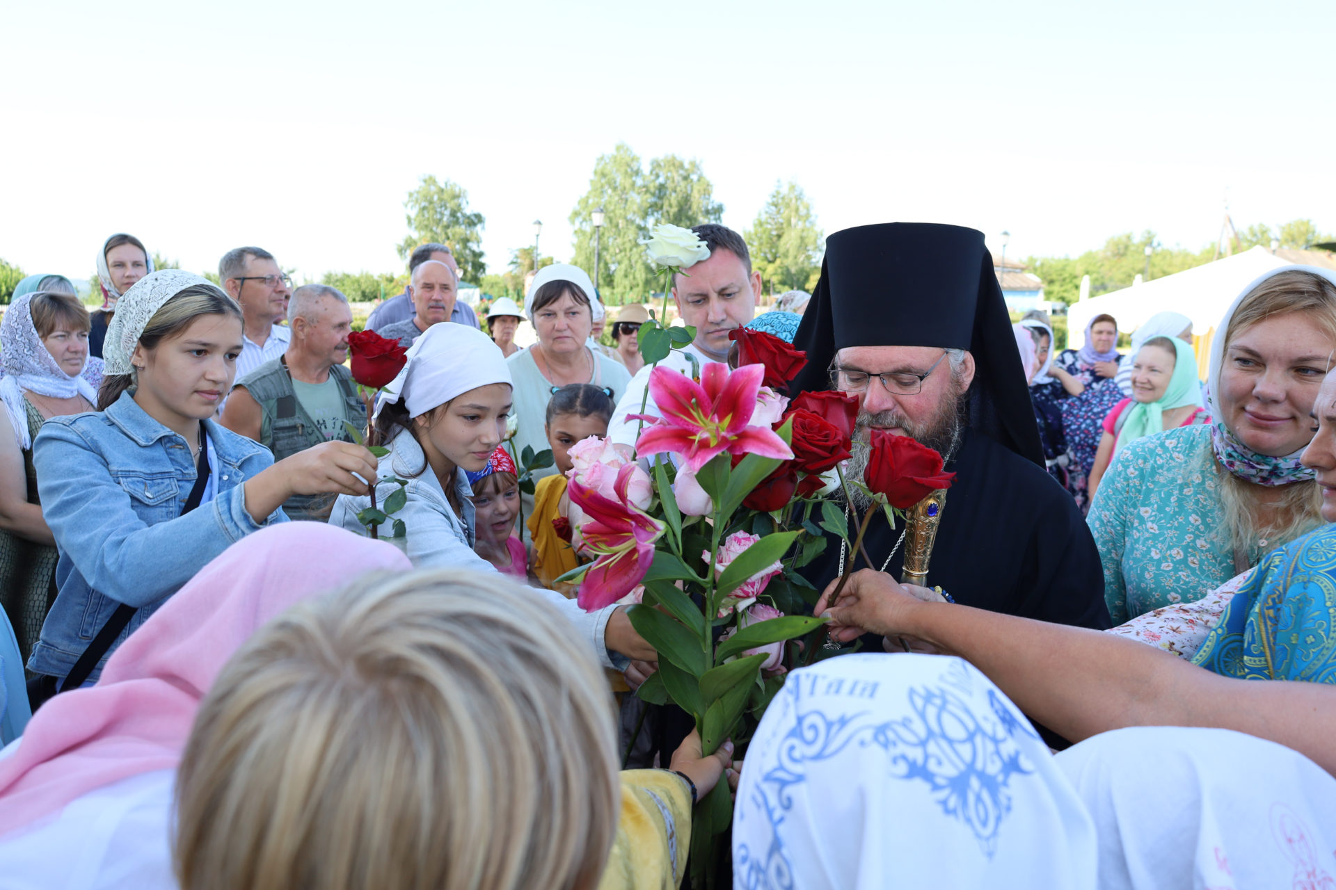 После торжественной Литургии был совершен крестный ход к святому источнику. На источнике был совершен молебен, верующие набирали освященную воду, окунались в водах источника в специально устроенной купели.